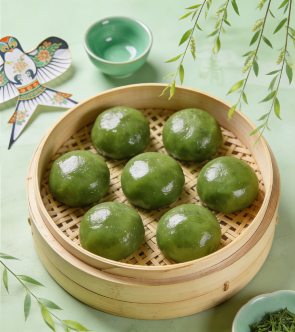 早春时节,江南的雨丝还带着些许清寒,但街头巷尾的糕团店里,已悄然氤氲开一团温润的、属于春天的绿意。那便是青团了。它静卧在蒸笼里,油绿如玉,糯韧绵软,周身裹着一层清亮的熟油,仿佛将整个江南湿漉漉、绿莹莹的春色,都收拢在了这枚掌心大小的团子里。对于江南人而言,吃青团不只是一次简单的尝鲜,它是一场郑重其事的春日仪式,一口咬下去,是“清静明洁”的节气,是慎终追远的情思,更是延续了千年的文化密码。
